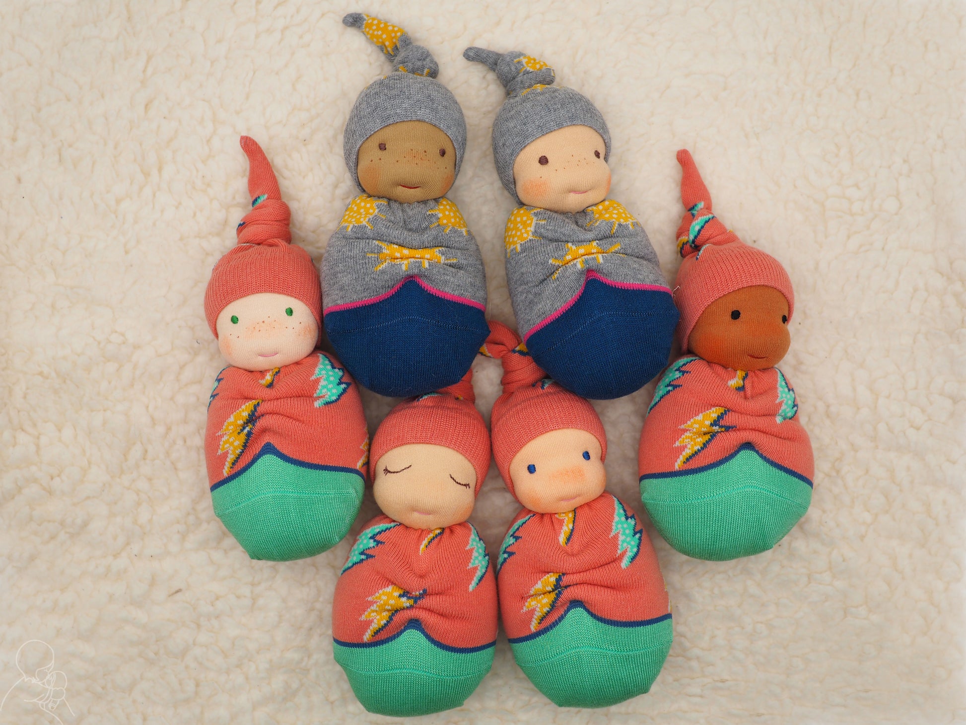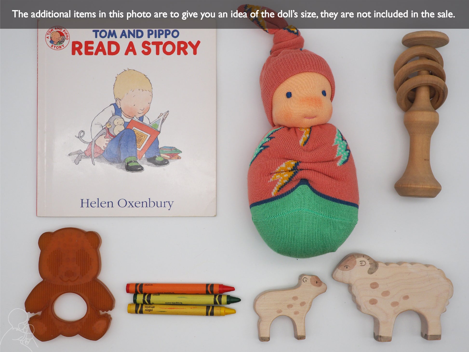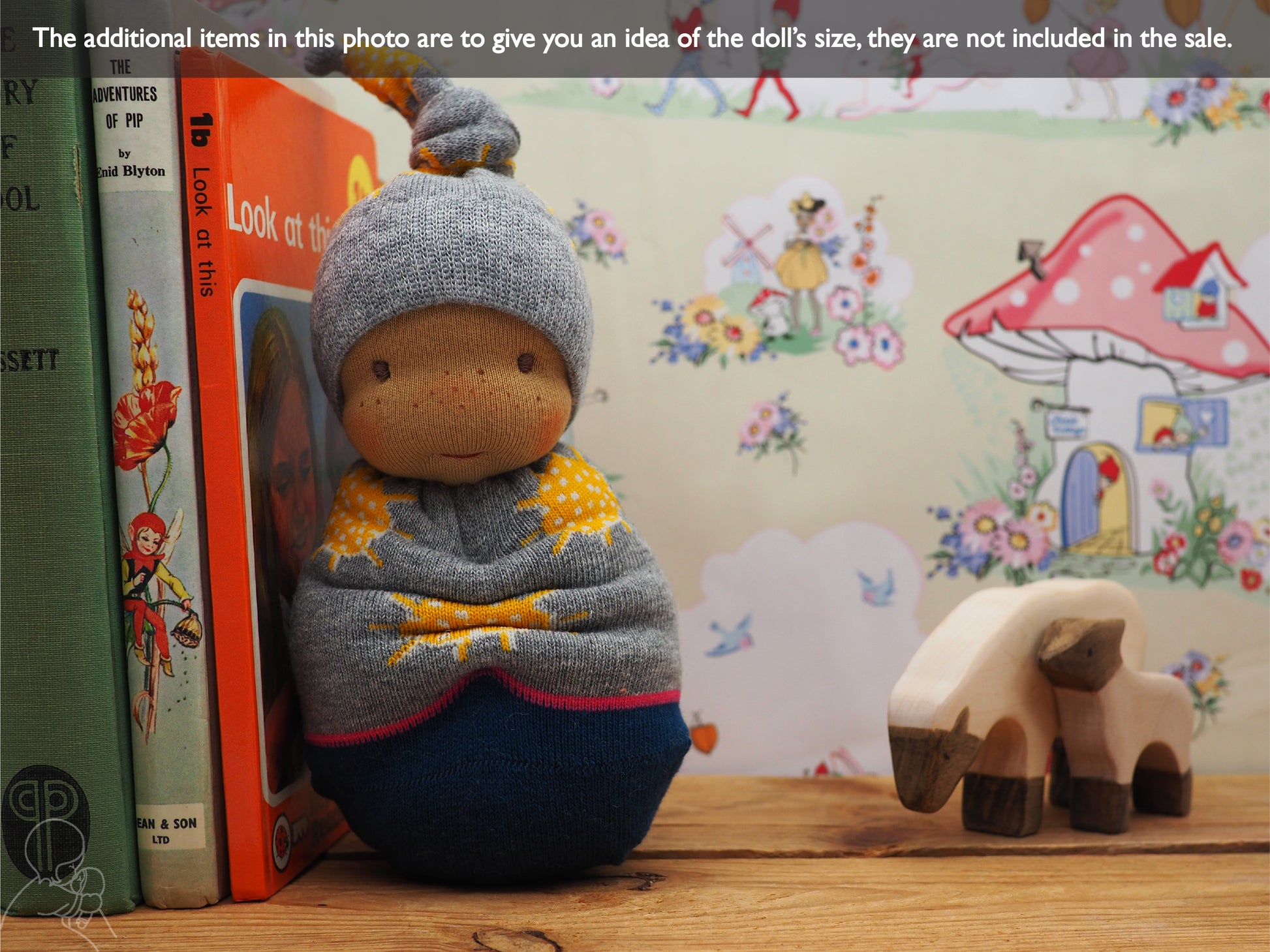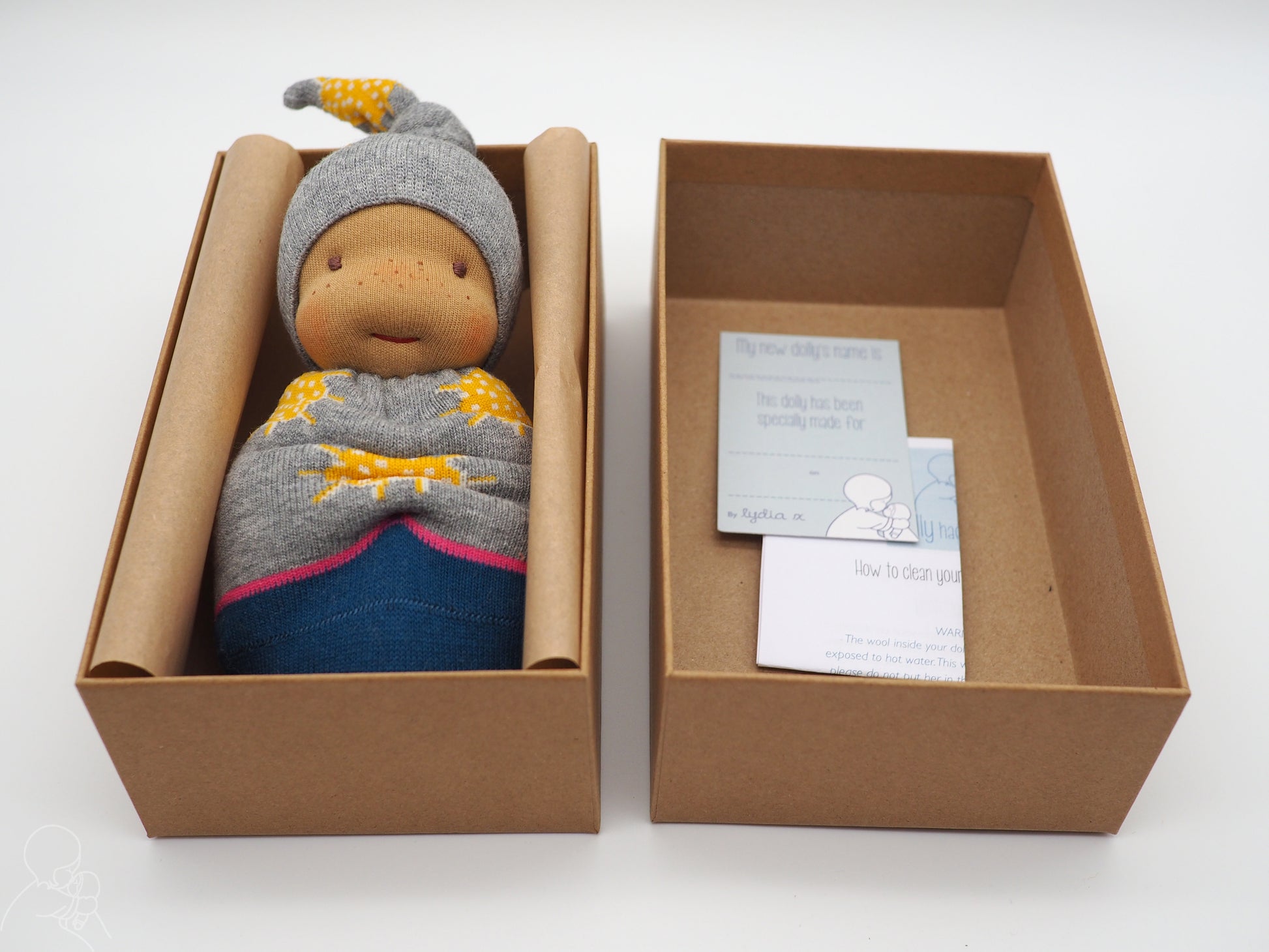 Please allow me 1-2 weeks to make your dolly. Please note that the socks have the Thought logo on them - this will be positioned on the back of the doll.