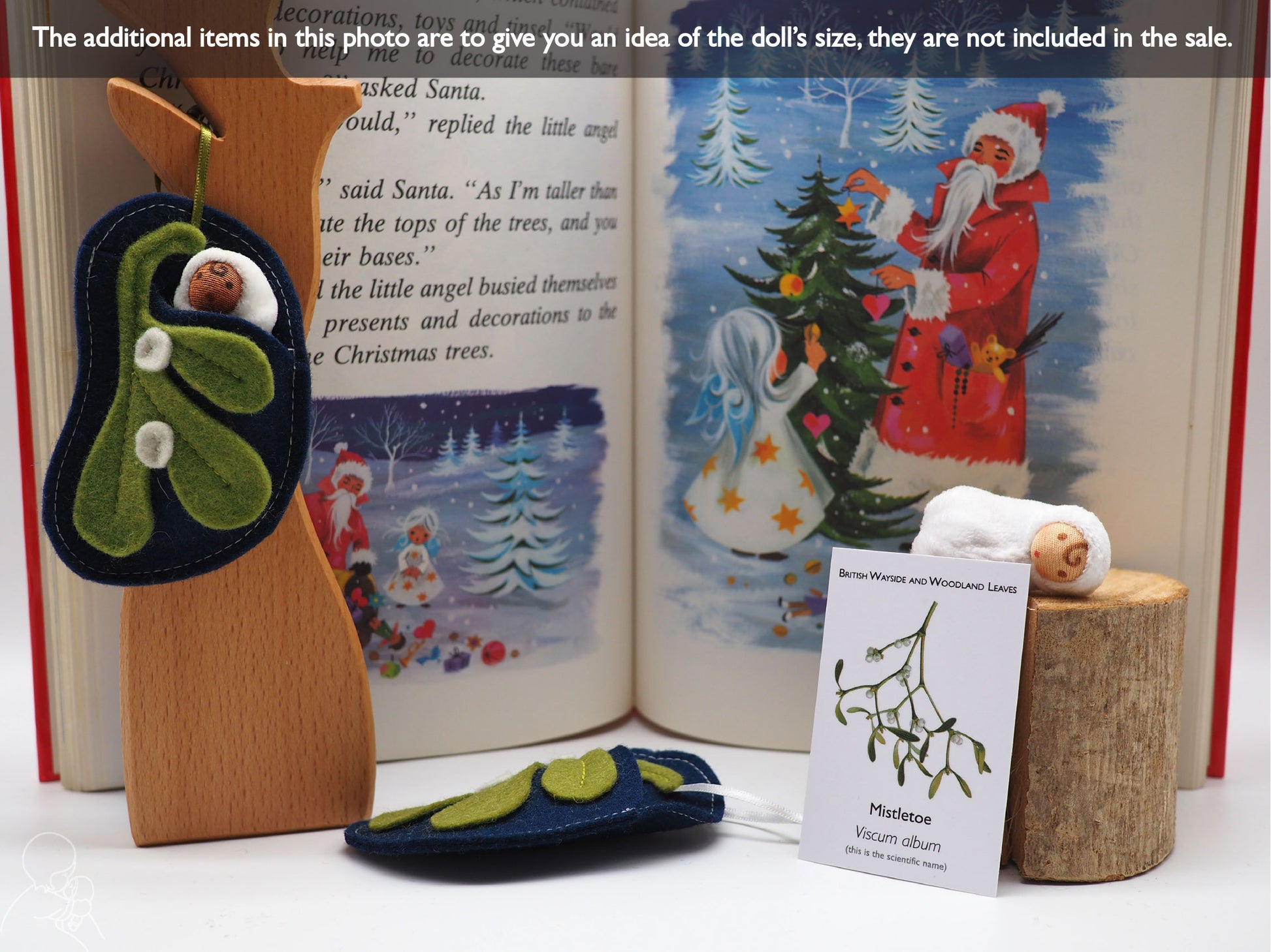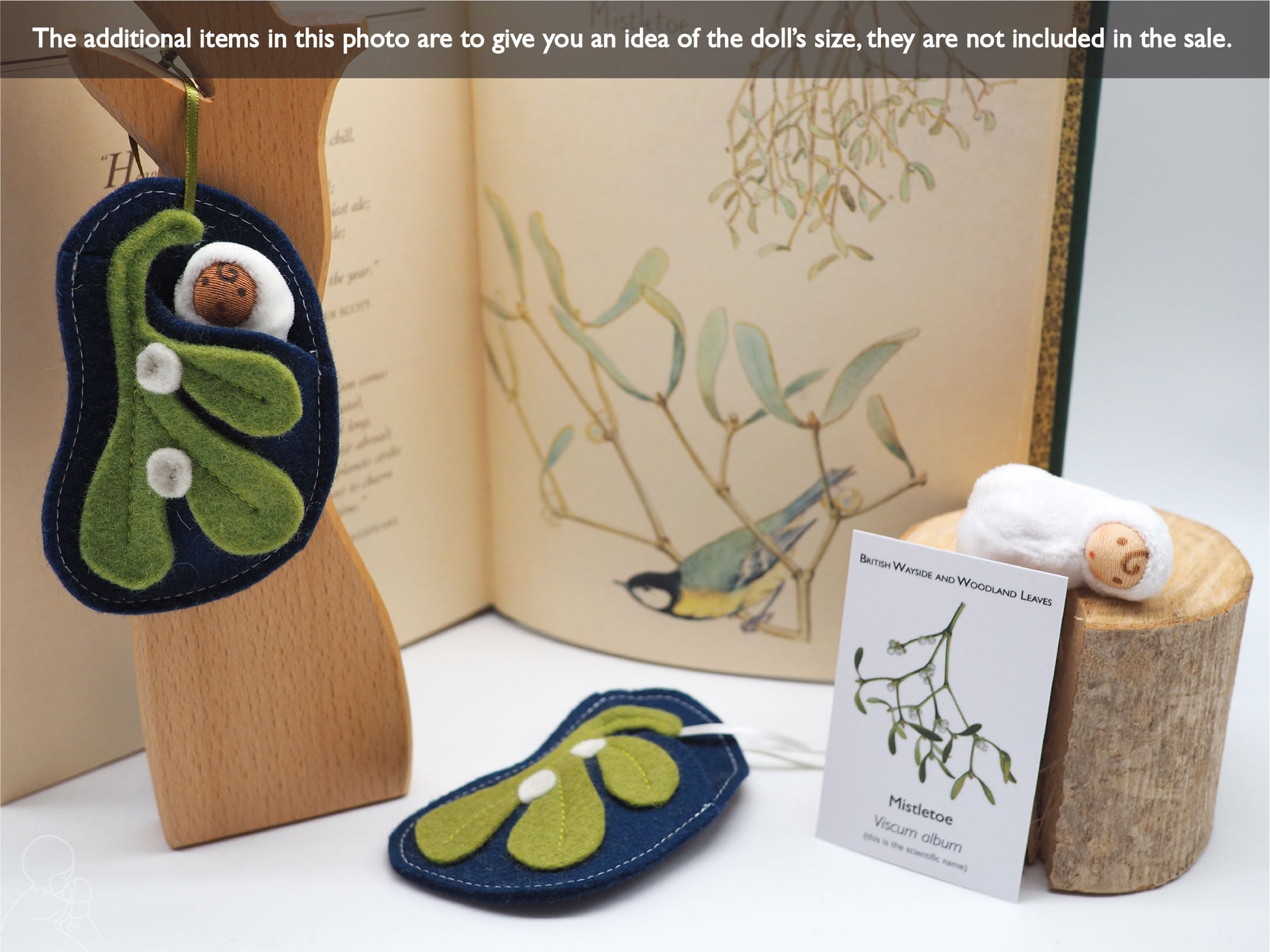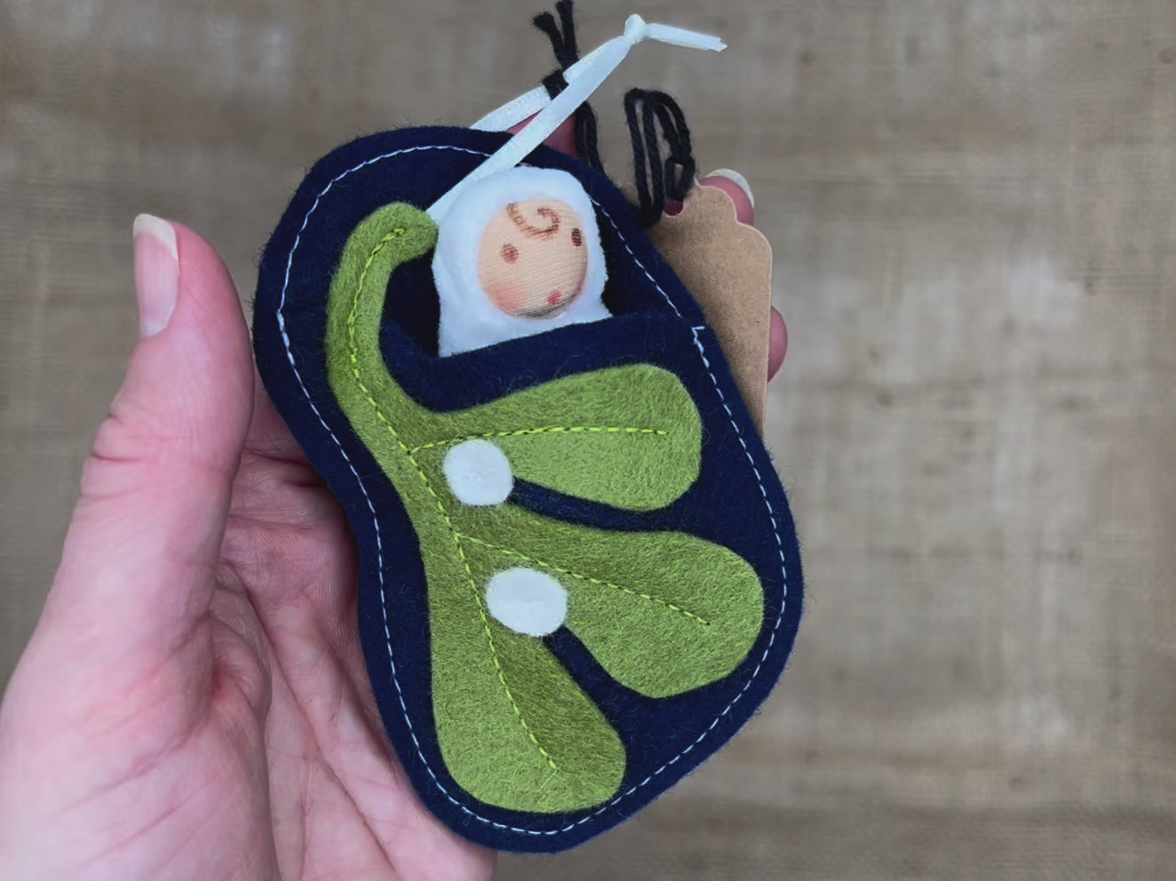 This simple doll is designed to inspire hours of nature play. The tiny doll is approximately 6.5 cm (2.5") tall, the felt pod is approximately 10.5 cm (4.25") tall.